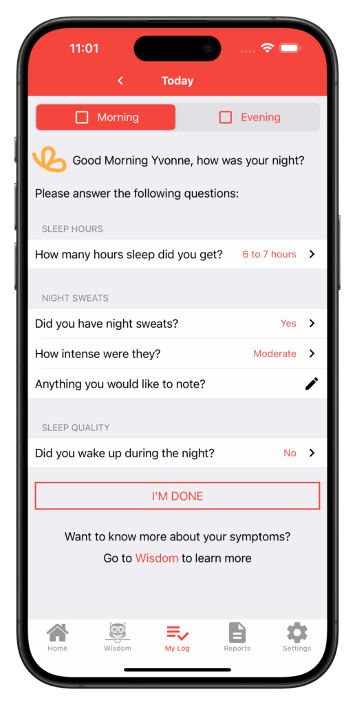 Get daily gentle reminders to enter your symptoms and to take care of yourself.